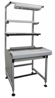 Durch den Einsatz eines Inspektionsarbeitsplatzes können Platinen zum Beispiel nach dem AOI ausgehoben werden und von einem Mitarbeiter an den vorgegebenen Stellen geprüft werden. Alternativ können diese Arbeitsplätze and er Linie Eingesetzt werden um z.B. Bauteile von Hand nachzusetzen, bevor die Platine in den Ofen fährt.