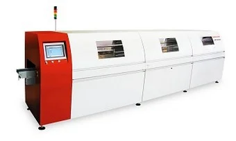 Das innovative Inline-Lötsystem VP 7000 für den Großserienanwender arbeitet nach dem von ASSCON entwickelten oxygen-free-process. Vorwärm- und Lötprozess finden unter Ausschluss von Sauerstoff statt. Bauteile wie QFP, BGA, Flip-Chip sowie keramische Baugruppen werden in höchster Qualität verarbeitet.Das System ist für die Einbindung in Großserien-Fertigungslinien zur trägerlosen Verarbeitung von Bauruppen vorgesehen. Elektrisch verstellbare Transportsysteme sowie Mittenunterstützungen erlauben ein schnelles und unkompliziertes Anpassen an die flexible Fertigung.