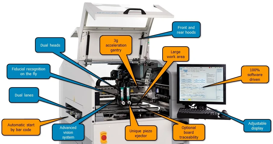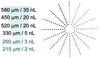 Die verfügbaren Punktgrößen können zwischen 215µm und 580µm variiert werden. Hierdurch reicht das Bauteilspektrum von 01005 über komplexe Stecker bis hin zu großen Depots.