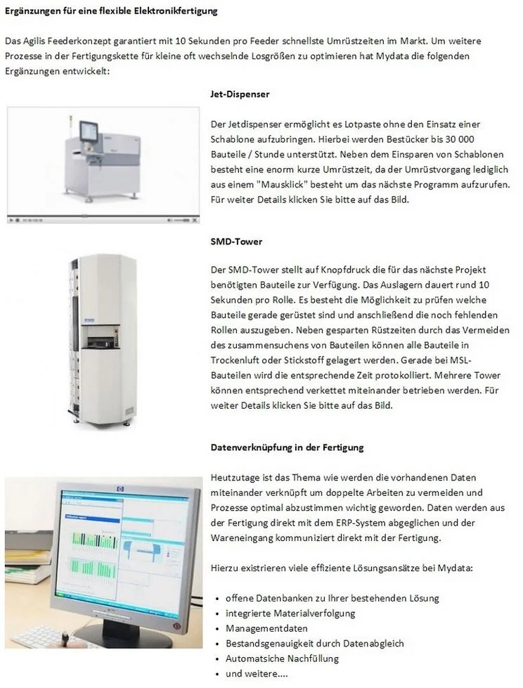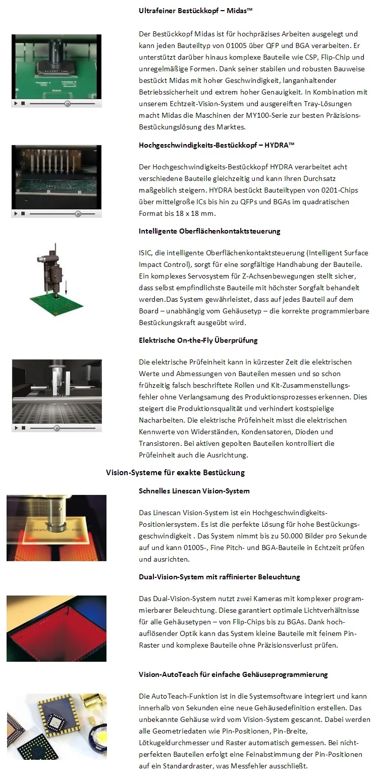 Die Bestückungsautomaten aus der Serie MY 200 stehen für höchse Flexibilität gepaart mit Bestückleistung. Mit diesen Eigenschaften spiegeln sie die Entwicklung der letzten Jahre in der Elektronikfertigung wieder. Der Trend geht zu kleineren Produktionslosen, wodurch sich ein höherer Aufwand in der Rüstung und der Logistik ergibt.