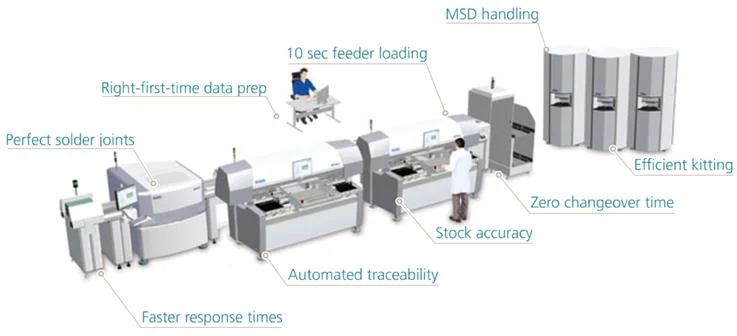 Das Gesamtkonzept für die SMD Fertigung von Mycronic umfasst mehr als einen einzelnen Prozess. Um effizient zu arbeiten sind folgende Prpzesse aufeinander abgestimmt: